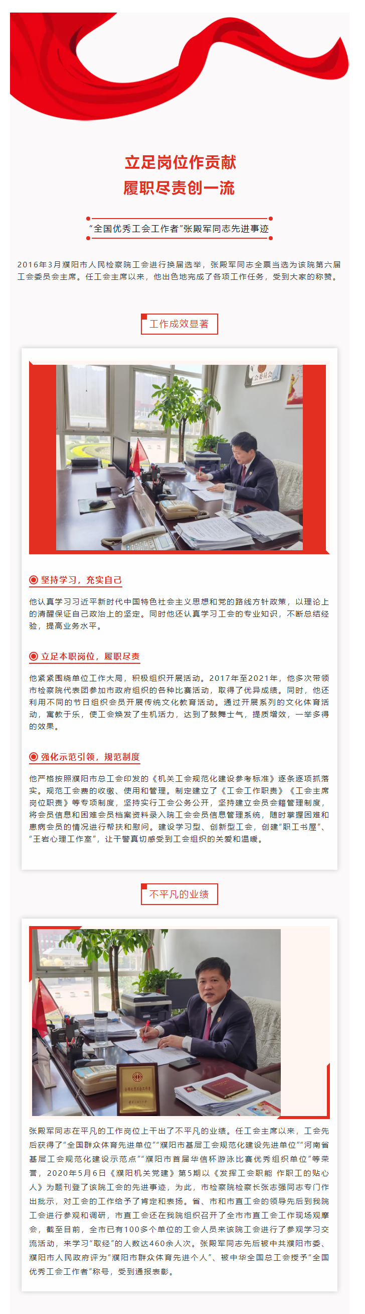 立足岗位作贡献 履职尽责创一流“全国优秀工会工作者”张殿军同志先进事迹