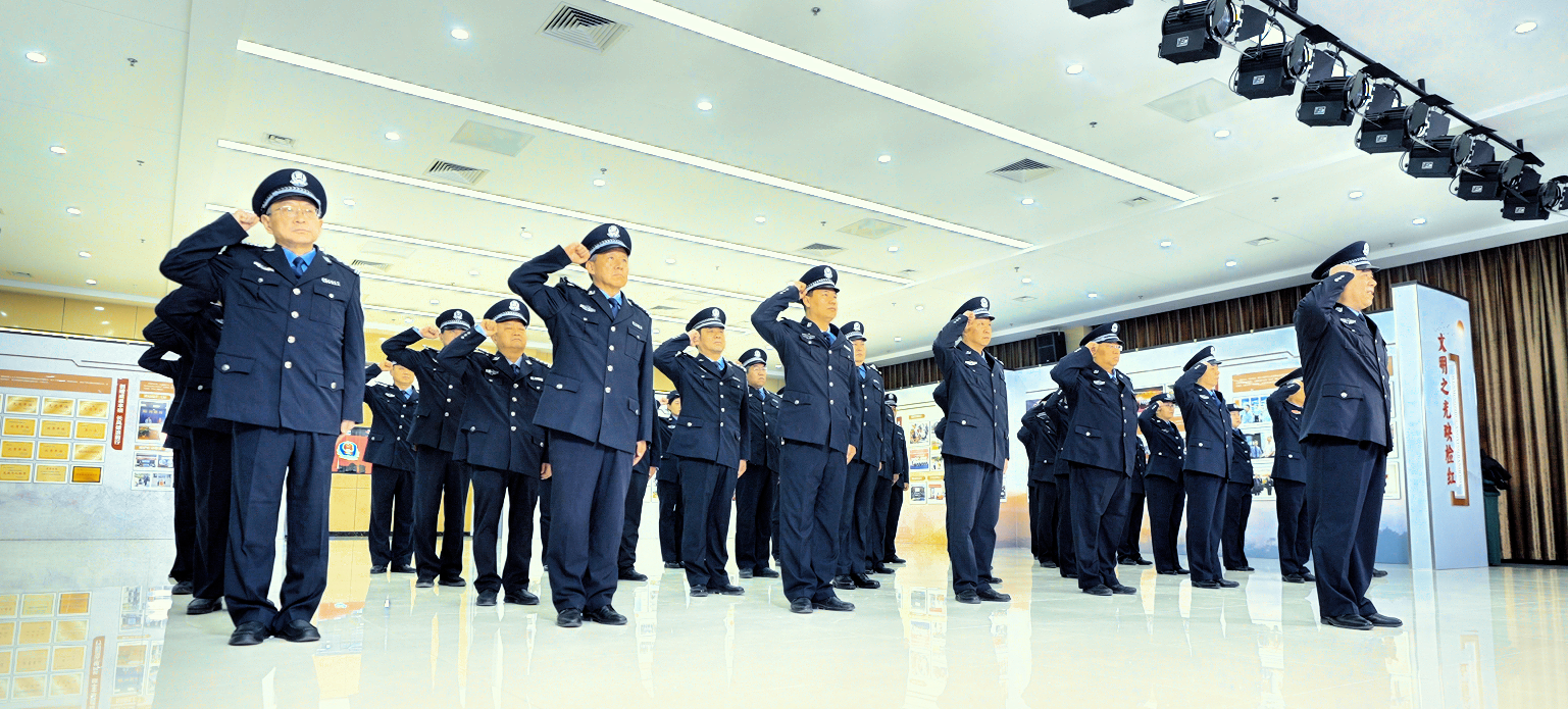 司法警察支队长张新富带领警队全体干警面对警旗庄严宣誓。一句句誓词砥砺初心,一声声承诺彰显斗志,全体干警用铿锵有力的誓词展现自己对党的无限忠诚和对司法警察工作的无比热爱。此次宣誓活动,提振了士气,振奋了精神。